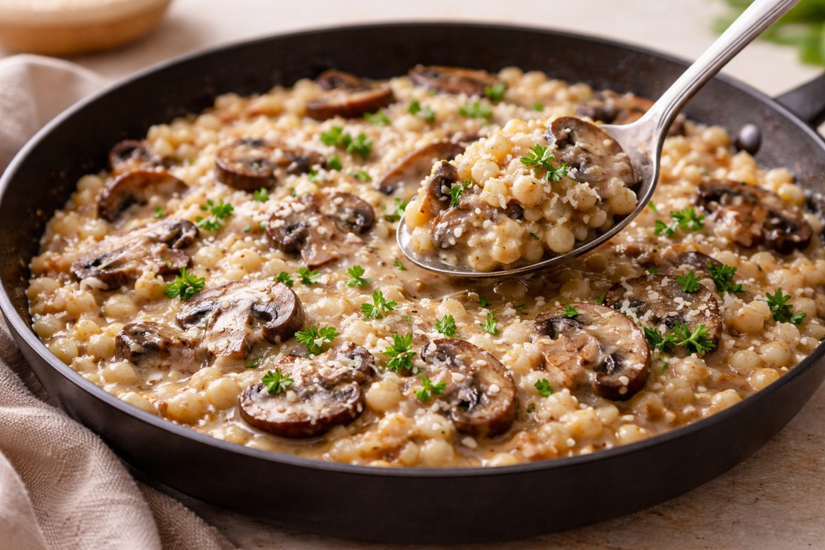 This is the dinner I make when I want comfort food but I don’t want the “pasta pot + sauce pan + colander” situation. Couscous is the cheat code: it cooks ridiculously fast, it turns fluffy, and it soaks up flavor like crazy. Add mushrooms, garlic, a little broth, and a splash of cream (or cream cheese), and it tastes like something you’d order—without the time.