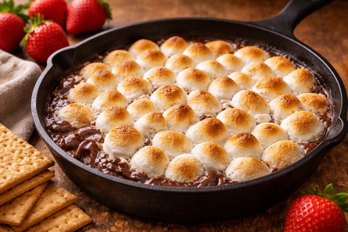Melted chocolate and gooey toasted marshmallows in one skillet—an 8-minute dessert dip I scoop up with graham crackers and fruit.