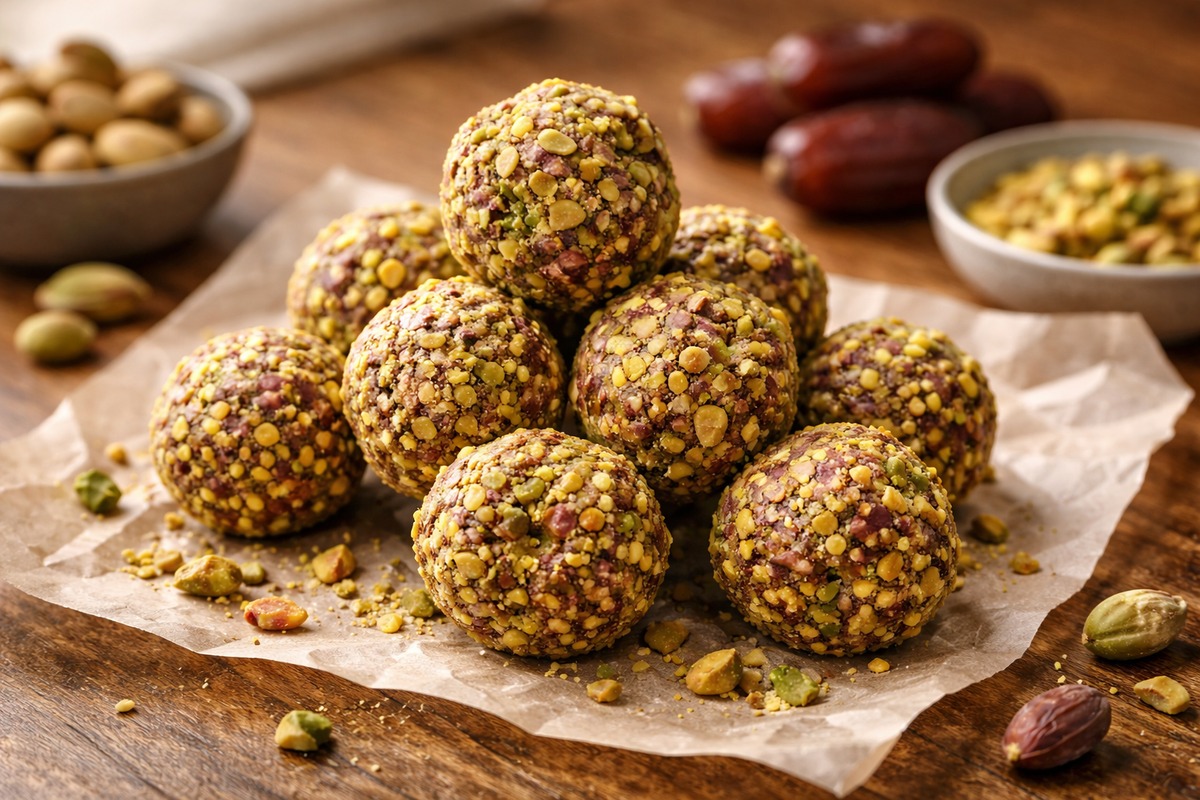 Sweet, nutty no-bake truffles made with dates and pistachios—10 minutes, naturally sweet, and perfect for quick snacking.