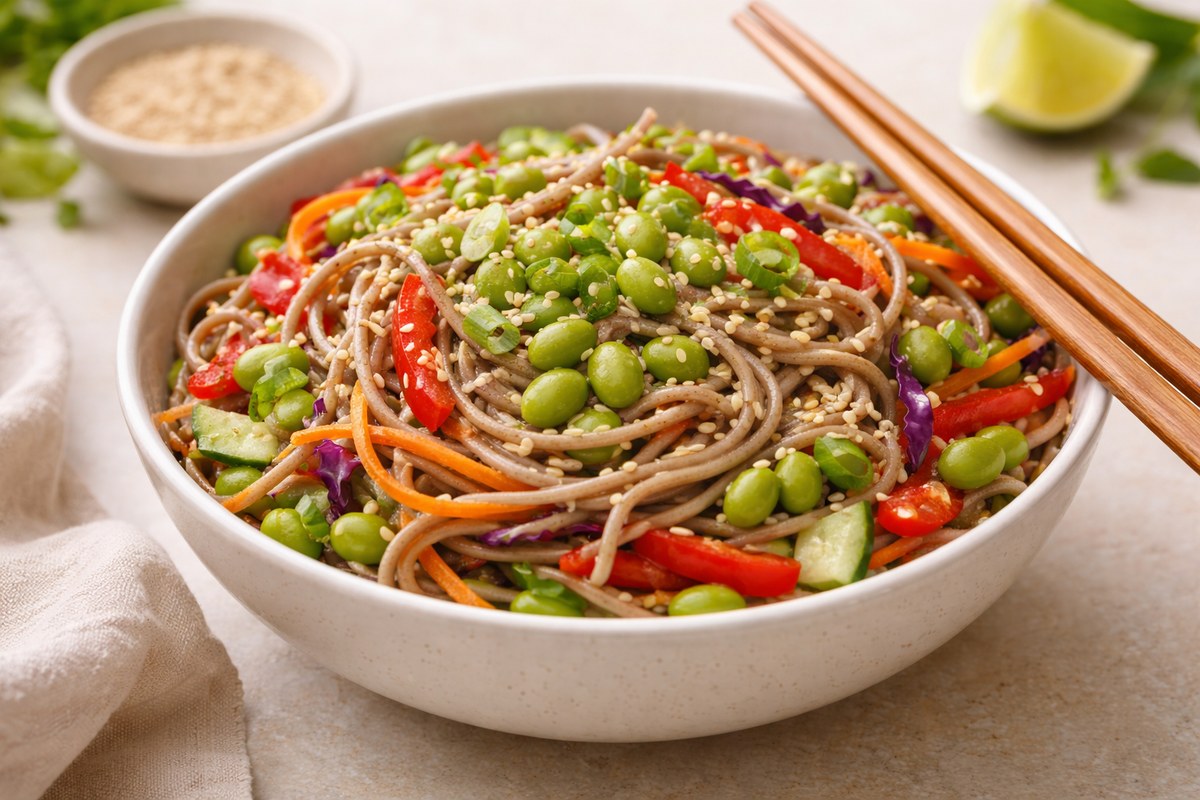 Cold sesame soba noodle salad with edamame and crunchy veggies—fast, meal-prep friendly lunch that tastes fresh and stays satisfying.