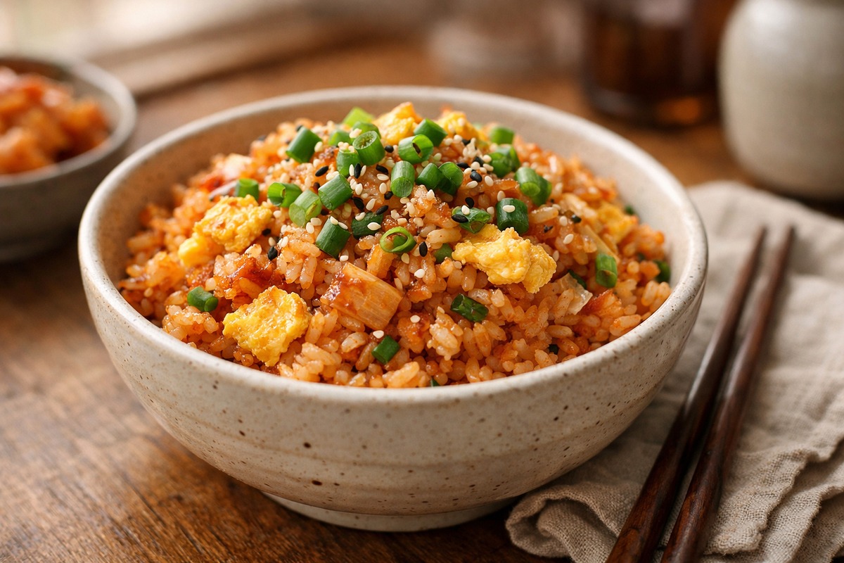 Spicy, savory kimchi fried rice with eggs—10 minutes, one pan, and the fastest way to turn leftover rice into dinner.