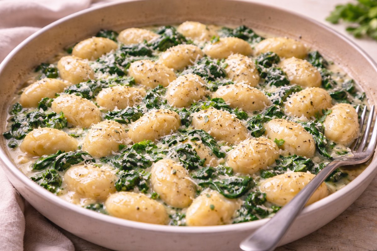 Pillowy gnocchi tossed in a creamy garlic Parmesan sauce with spinach—one pan, super fast, and better than takeout.