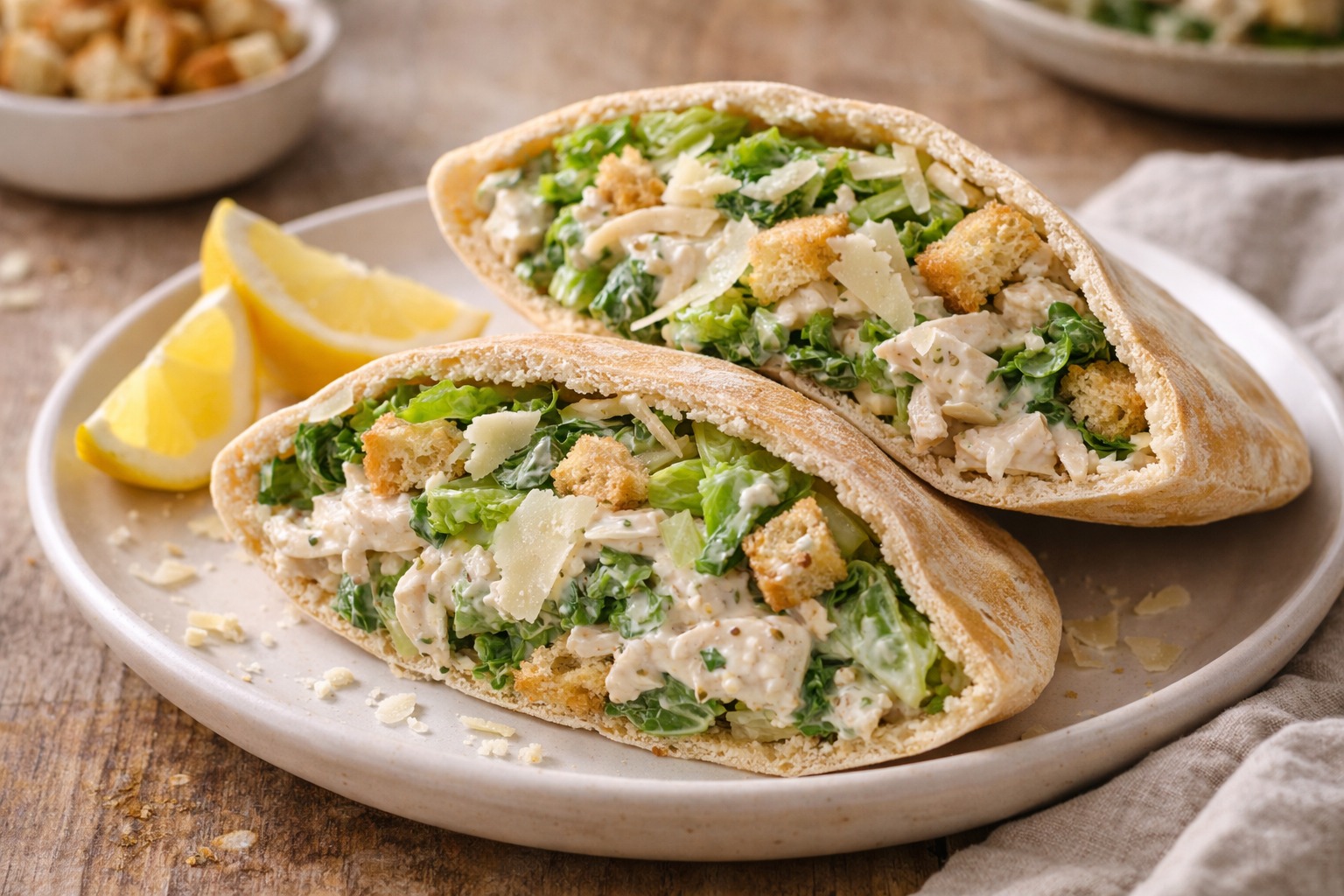 Some lunches are good because they are easy, and some are good because they actually feel satisfying. This one does both. These pita pockets take the familiar flavors of a chicken Caesar salad and turn them into something hand-held, crunchy, creamy, and filling enough to carry you through the afternoon.