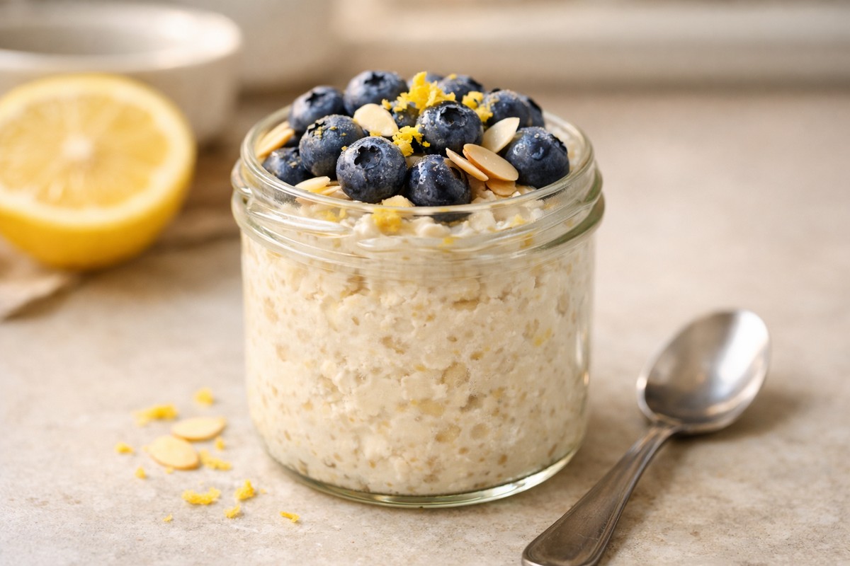 Creamy ricotta overnight oats with bright lemon and juicy blueberries—easy to prep ahead for a fresh, satisfying breakfast.