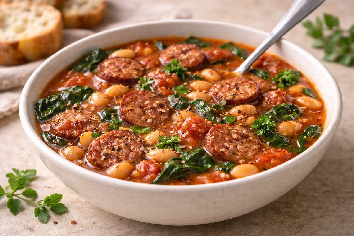 A cozy one-pot dinner with smoky sausage, creamy white beans, and a garlicky tomato broth—hearty, fast, and perfect for weeknights.