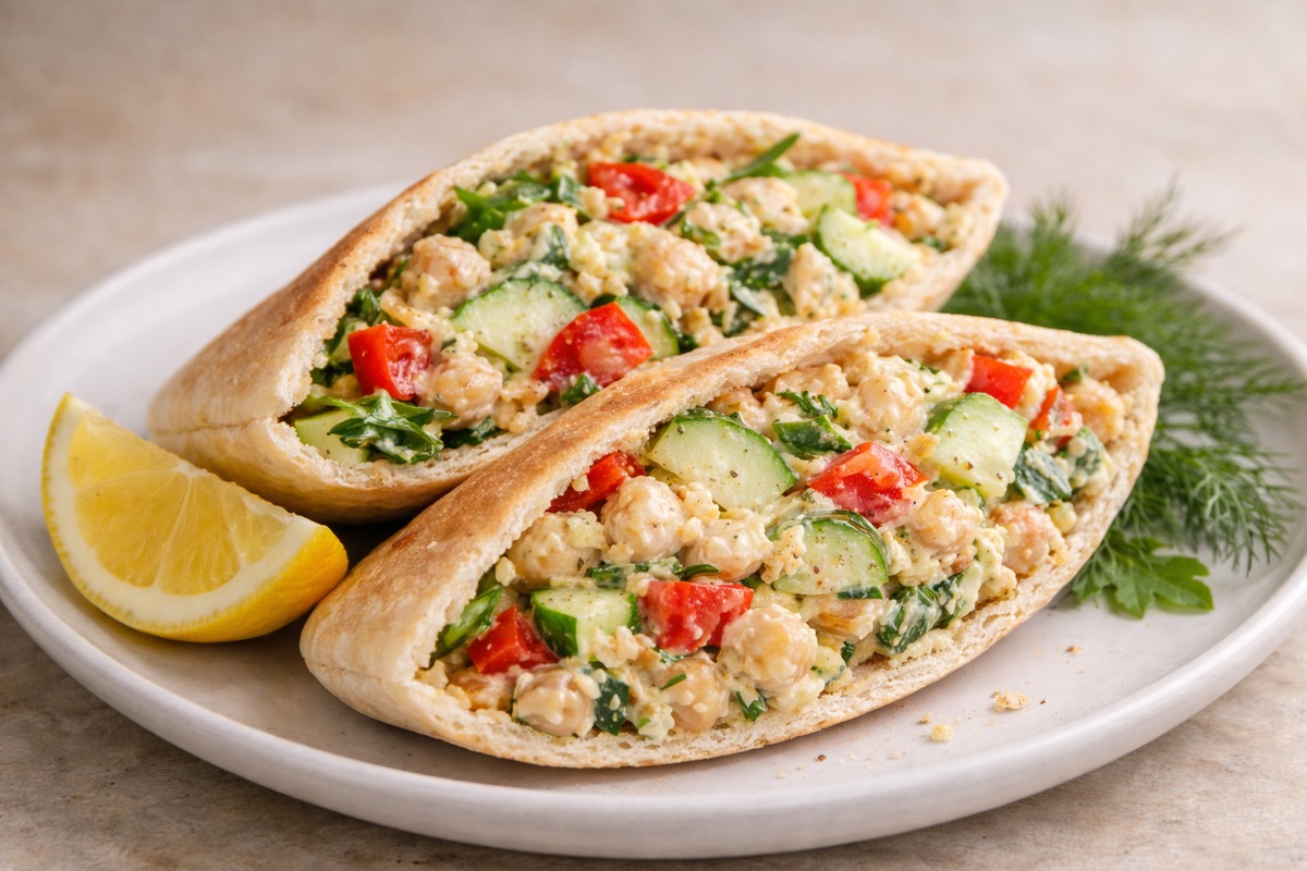 Creamy lemon-dill chickpea salad in pitas is my fast no-cook lunch that actually keeps me full.