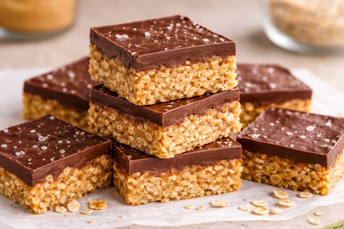 Chewy no-bake peanut butter chocolate oat bars are my easiest dessert when I need something sweet fast.