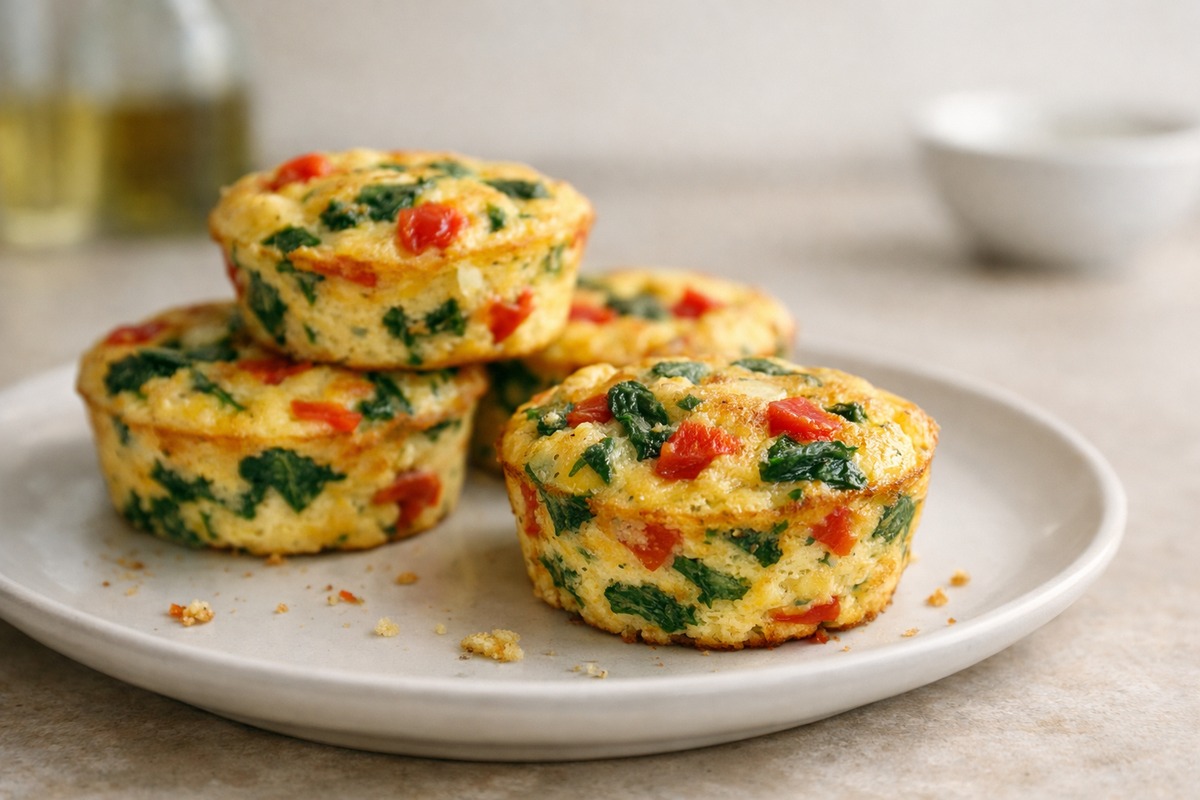 Fluffy, high-protein egg muffins with spinach and roasted red pepper are my easiest grab-and-go breakfast.