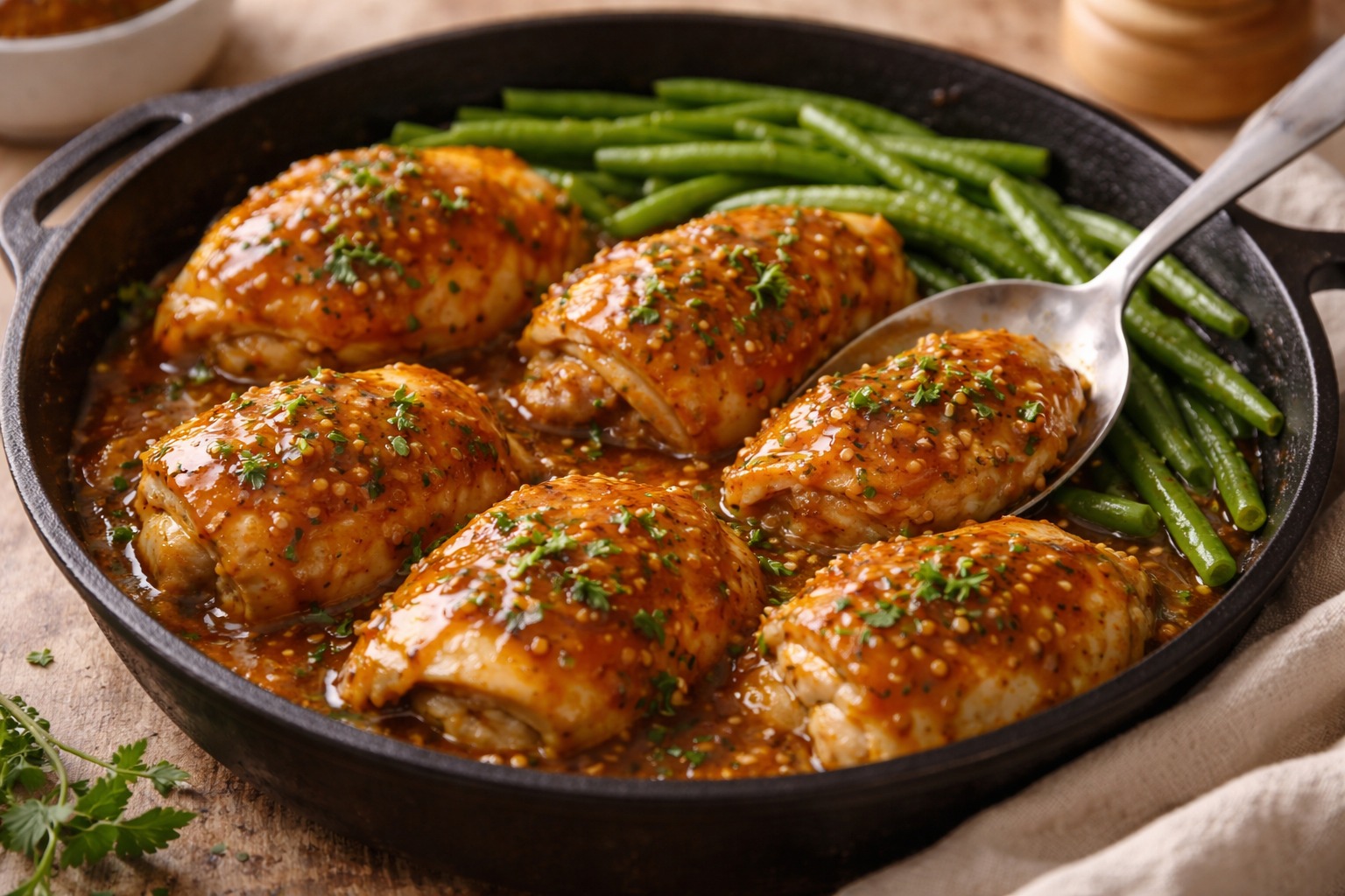 Apricot preserves are the shortcut ingredient that makes this meal work. They bring sweetness and body to the sauce without needing extra steps, and Dijon mustard adds just enough sharpness to keep things balanced. Garlic and a splash of vinegar round everything out, while green beans cook right in the same pan so the whole meal stays simple.